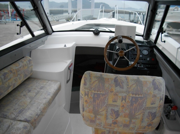 装備は、オートパイロット(リモコン付き)、10,1インチGPS魚探、バウスラスター、トローリングバルブ、スターンステップ
