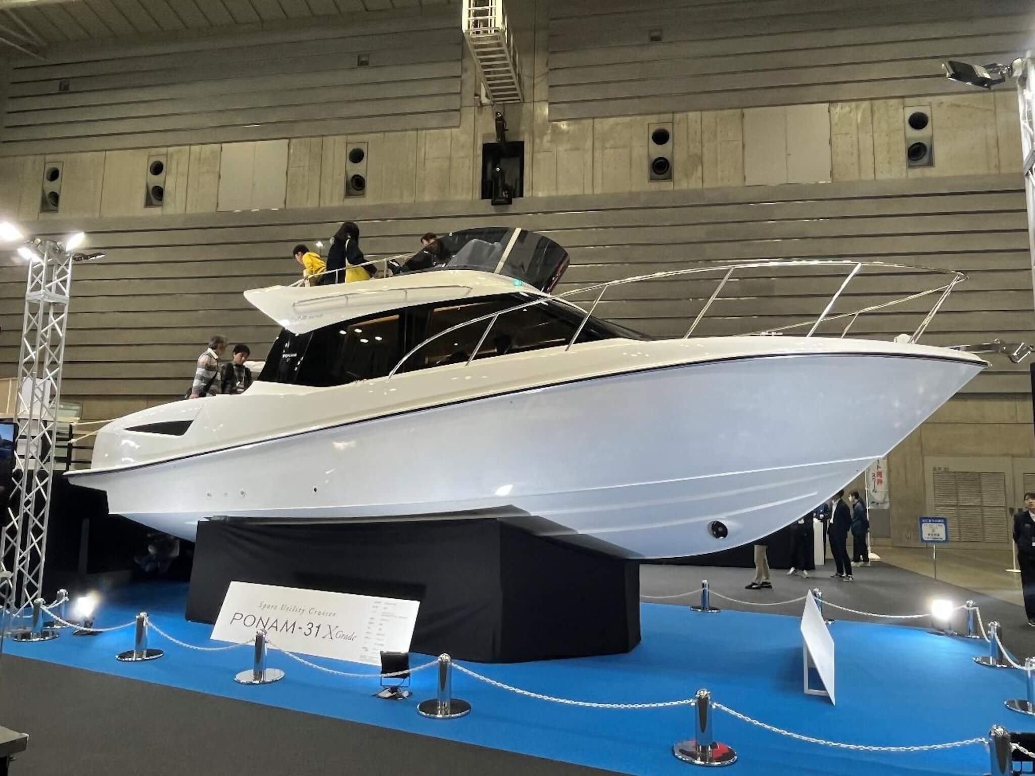 トヨタからはスポーツユーティリティークルーザーである「PONAM-31」のXグレードが出展されています。自動車の開発で培われた技術が注がれており、アルミ製の船体による乗り心地と高い走破性を備えています。3リッターのディーゼルターボエンジンを搭載し、従来モデルではオプションであった定点保持システムが標準装備されるなど、操船をサポートする機能も充実しています。また、船内のソファやシートがファブリックからレザー調に変更され、より上質な内装となっている点もXグレードの特徴です。