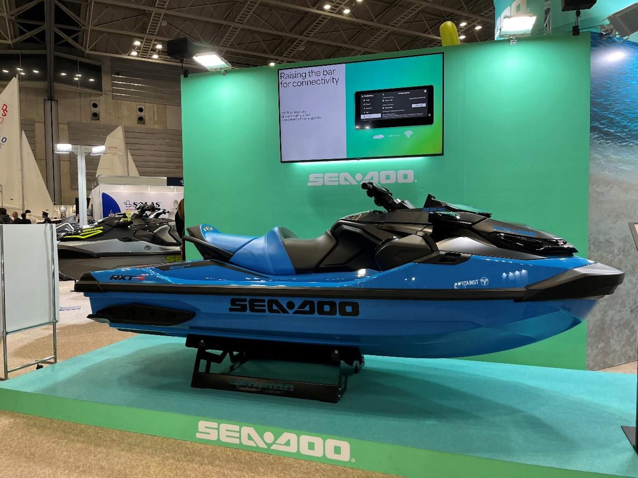 カナダのBRP社が展開するSEA-DOOブランドからは、ハイパフォーマンスモデルの「RXT-X 325」が展示されていました。325馬力を誇るエンジンを搭載し、高い加速性能と安定性を備えた一艇です。水上を疾走する姿を想像させるスポーティーなデザインが来場者の注目を集めていました。